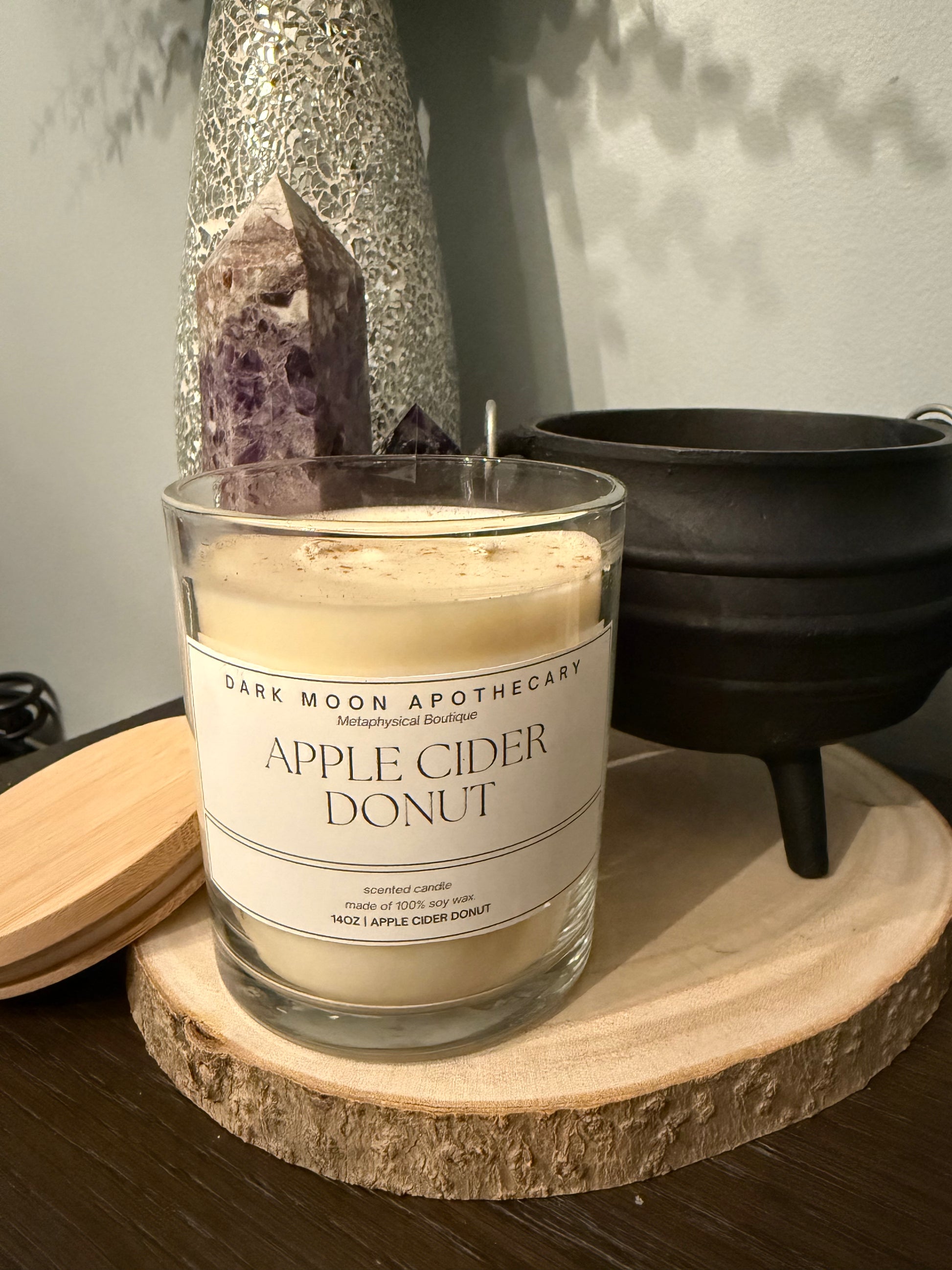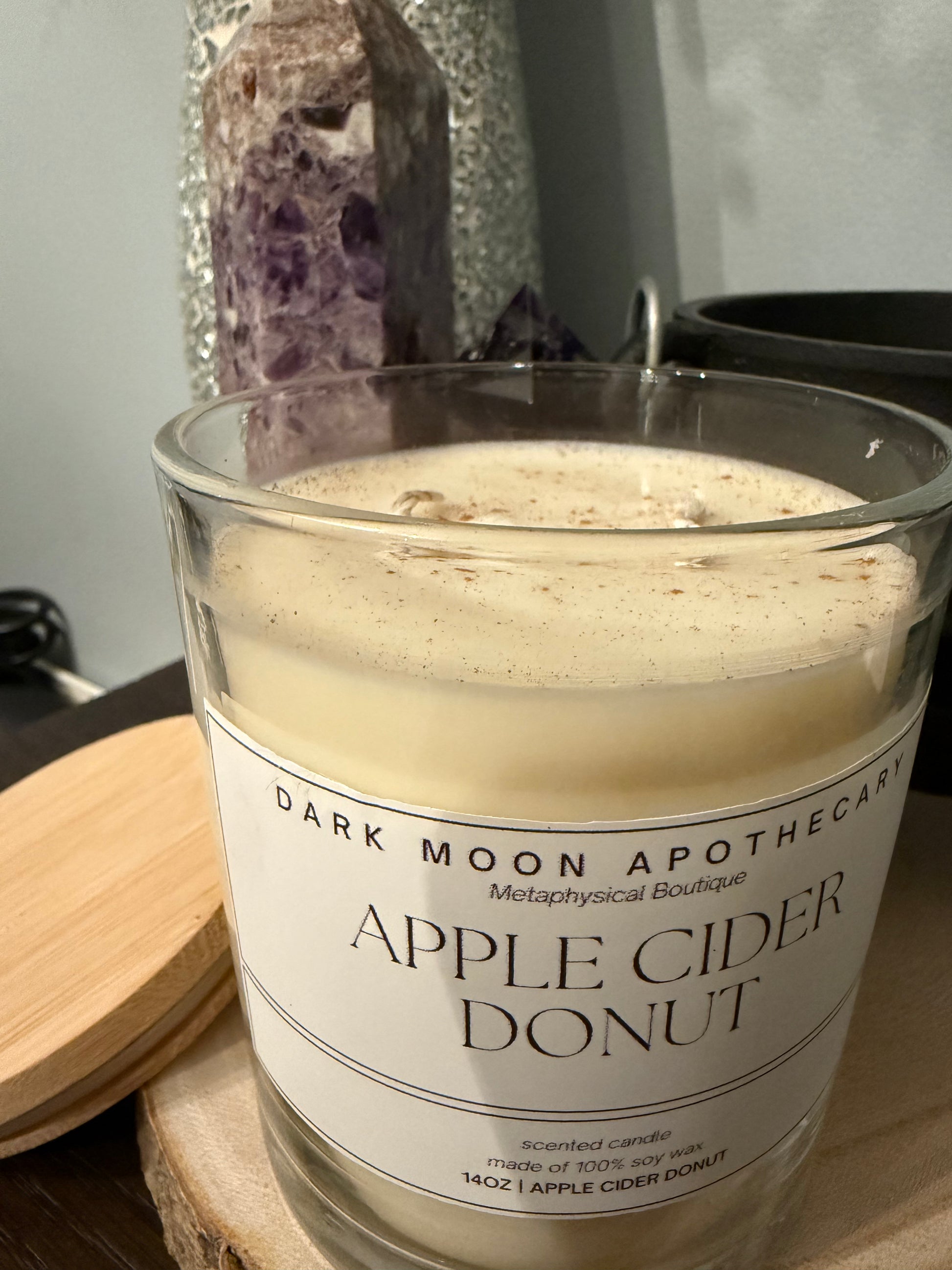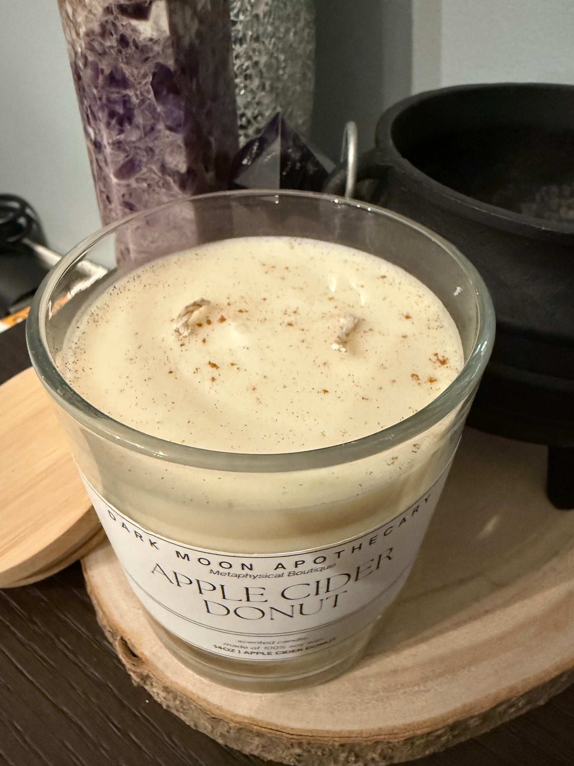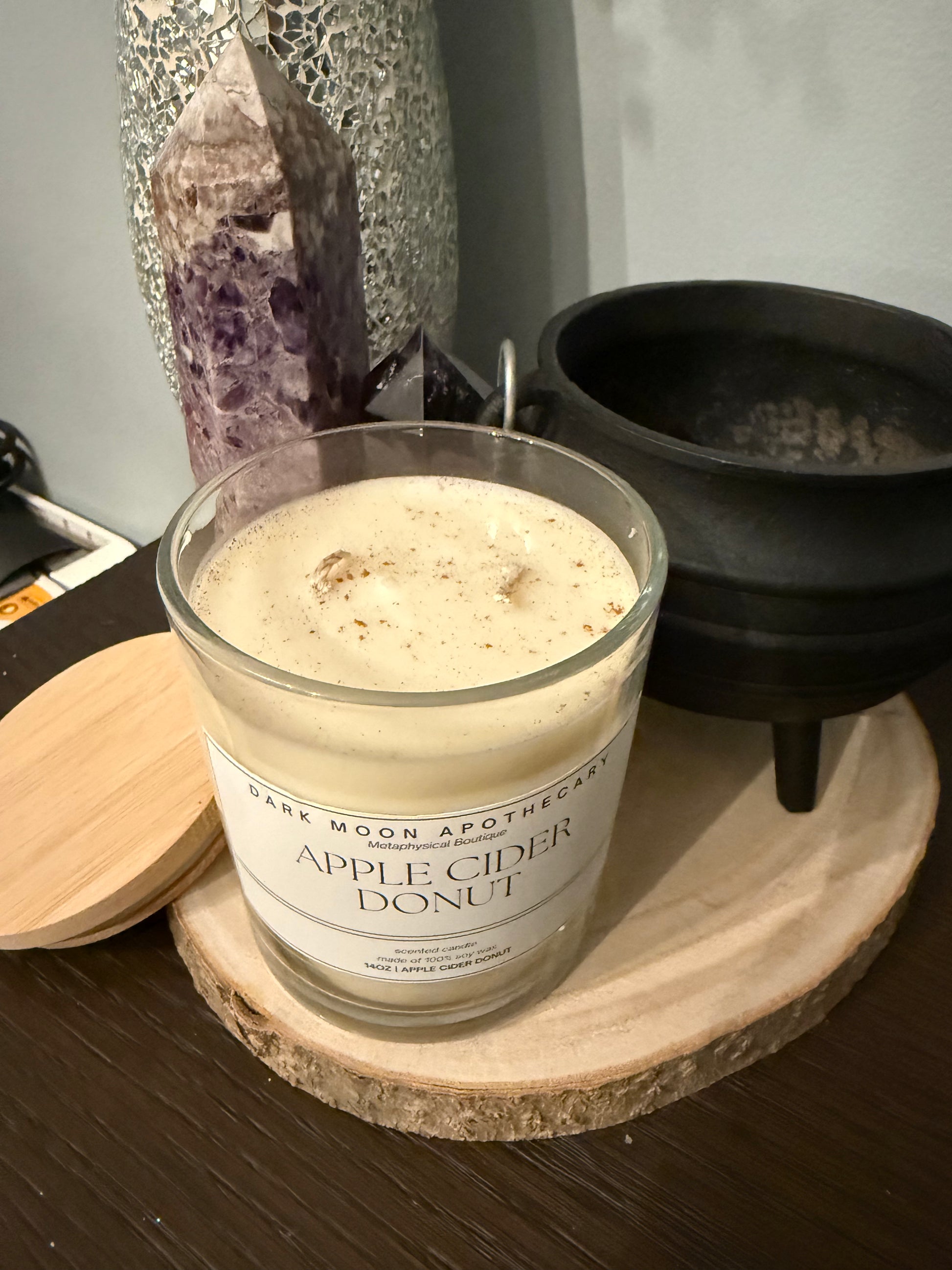 Bring the warmth of a fall festival home with our Apple Cider Donut candle. Poured in creamy soy wax and topped with a dusting of spice, this candle captures the cozy joy of crisp autumn days and sweet seasonal treats.