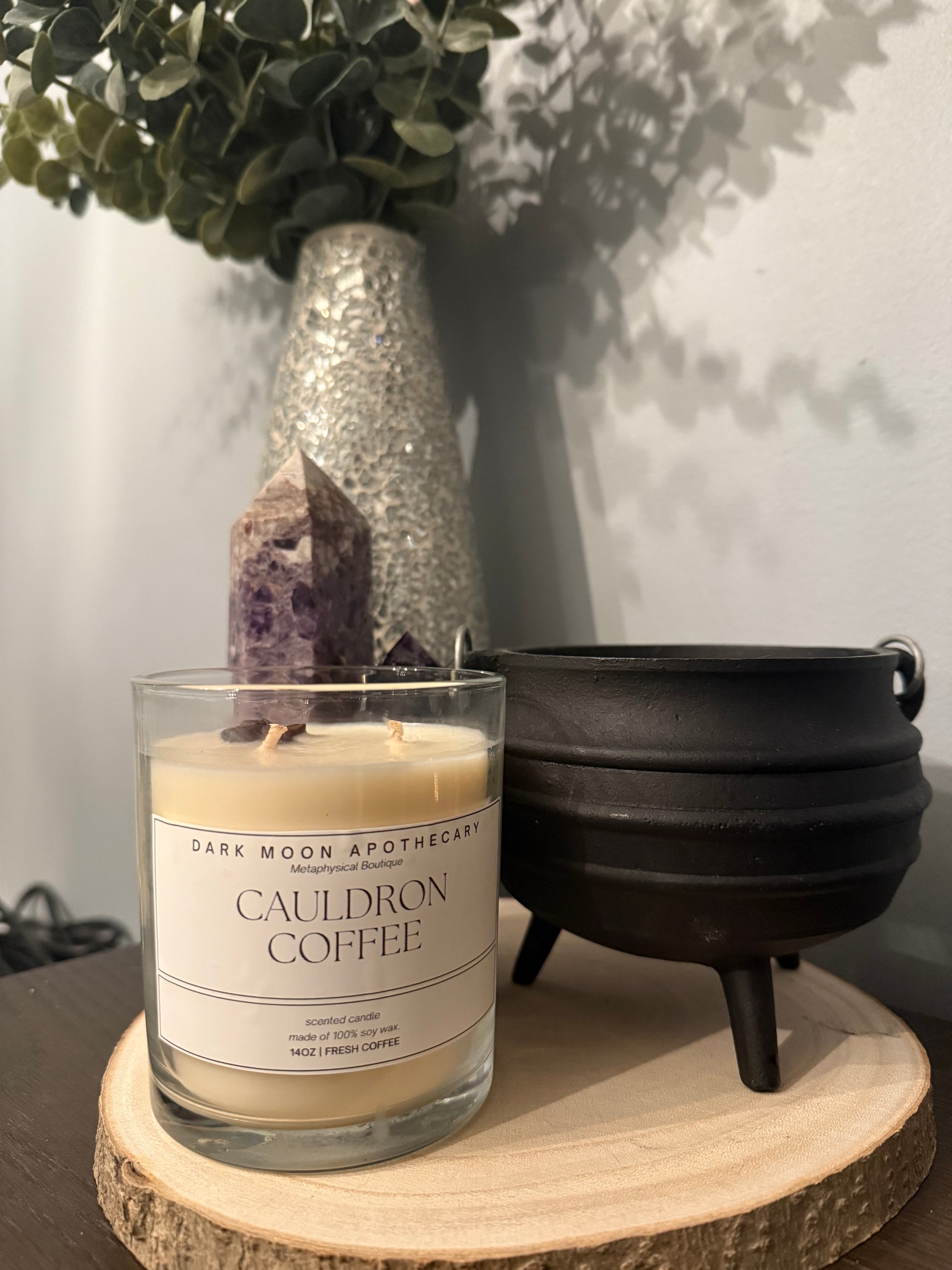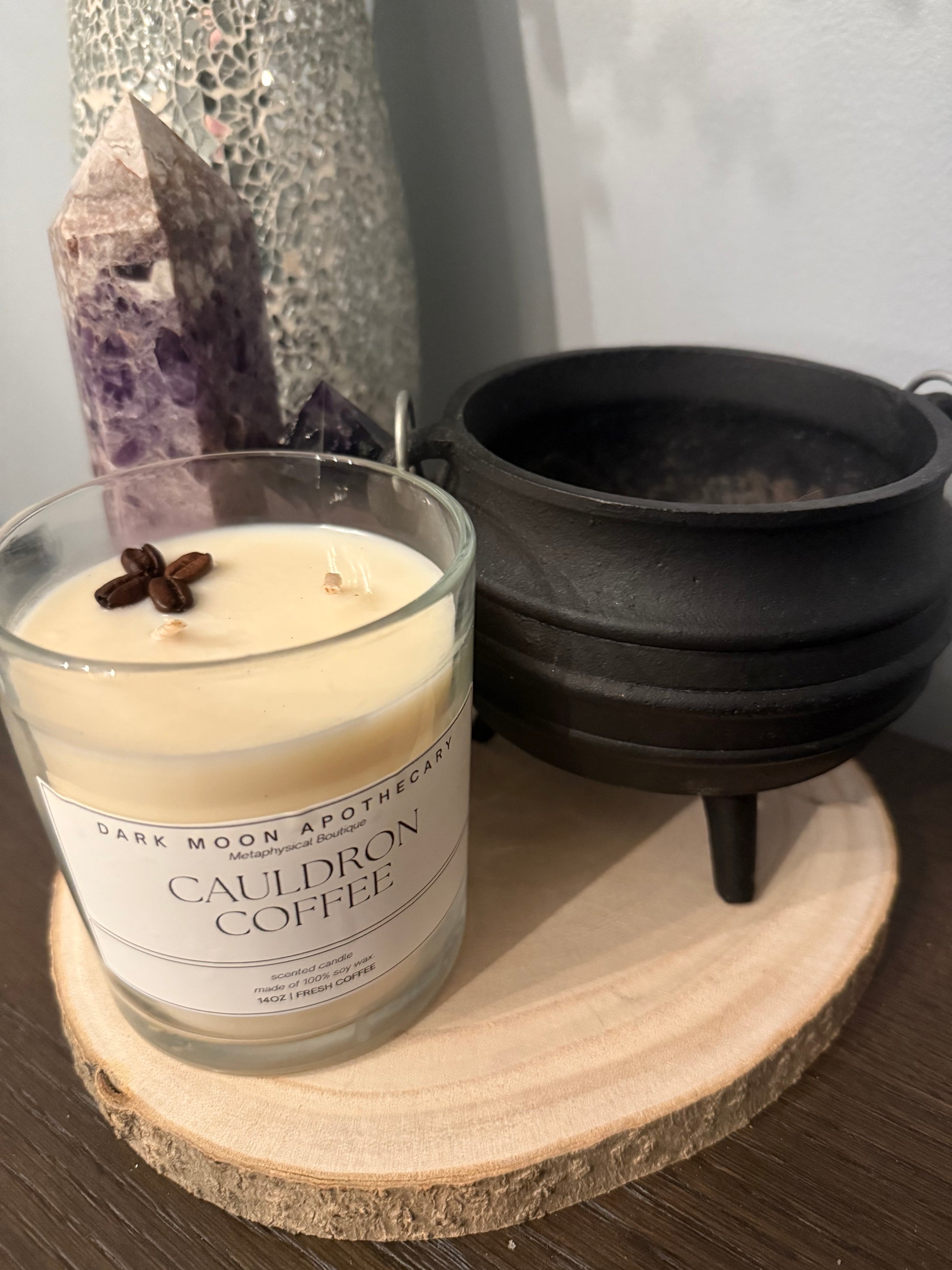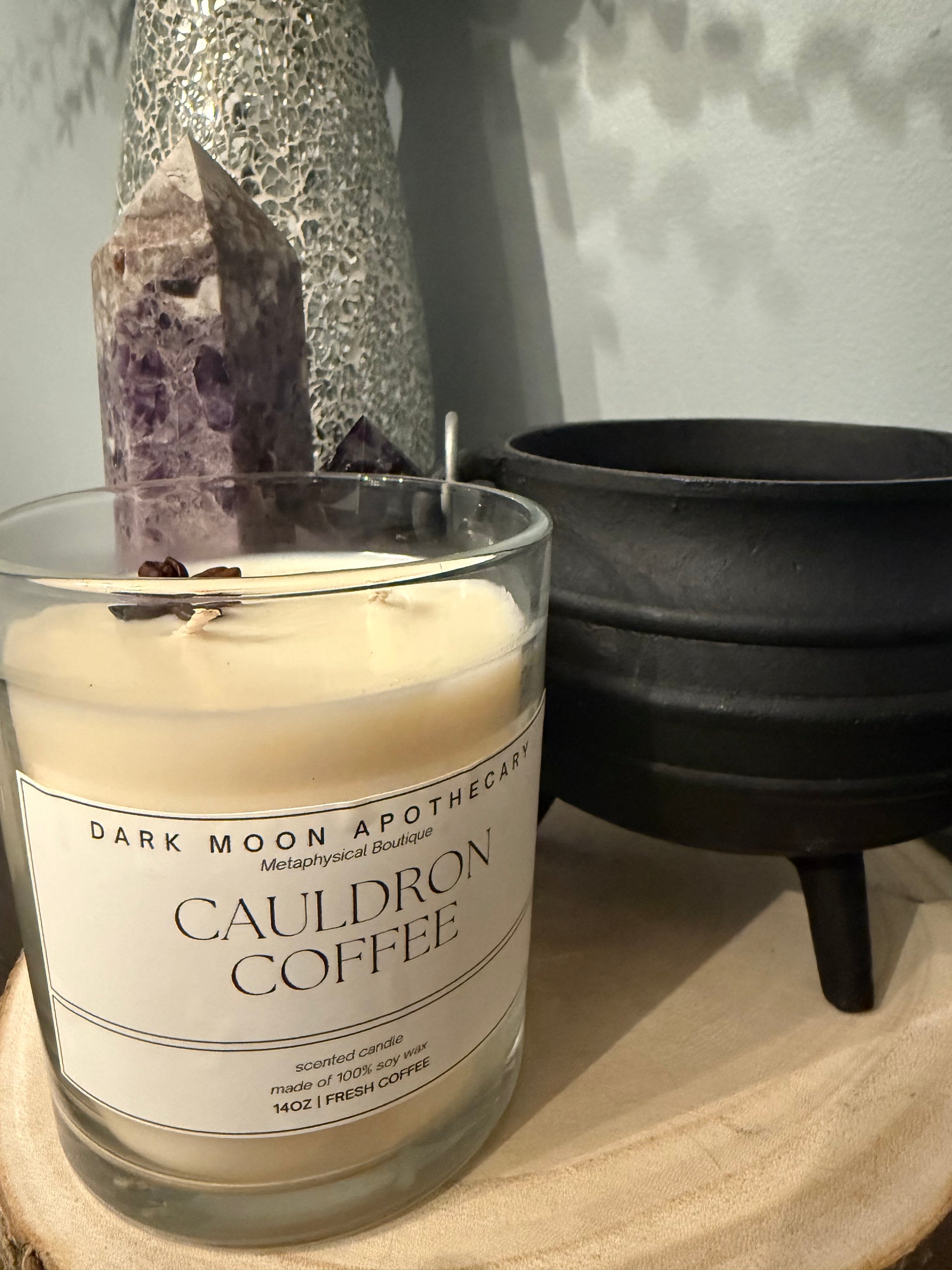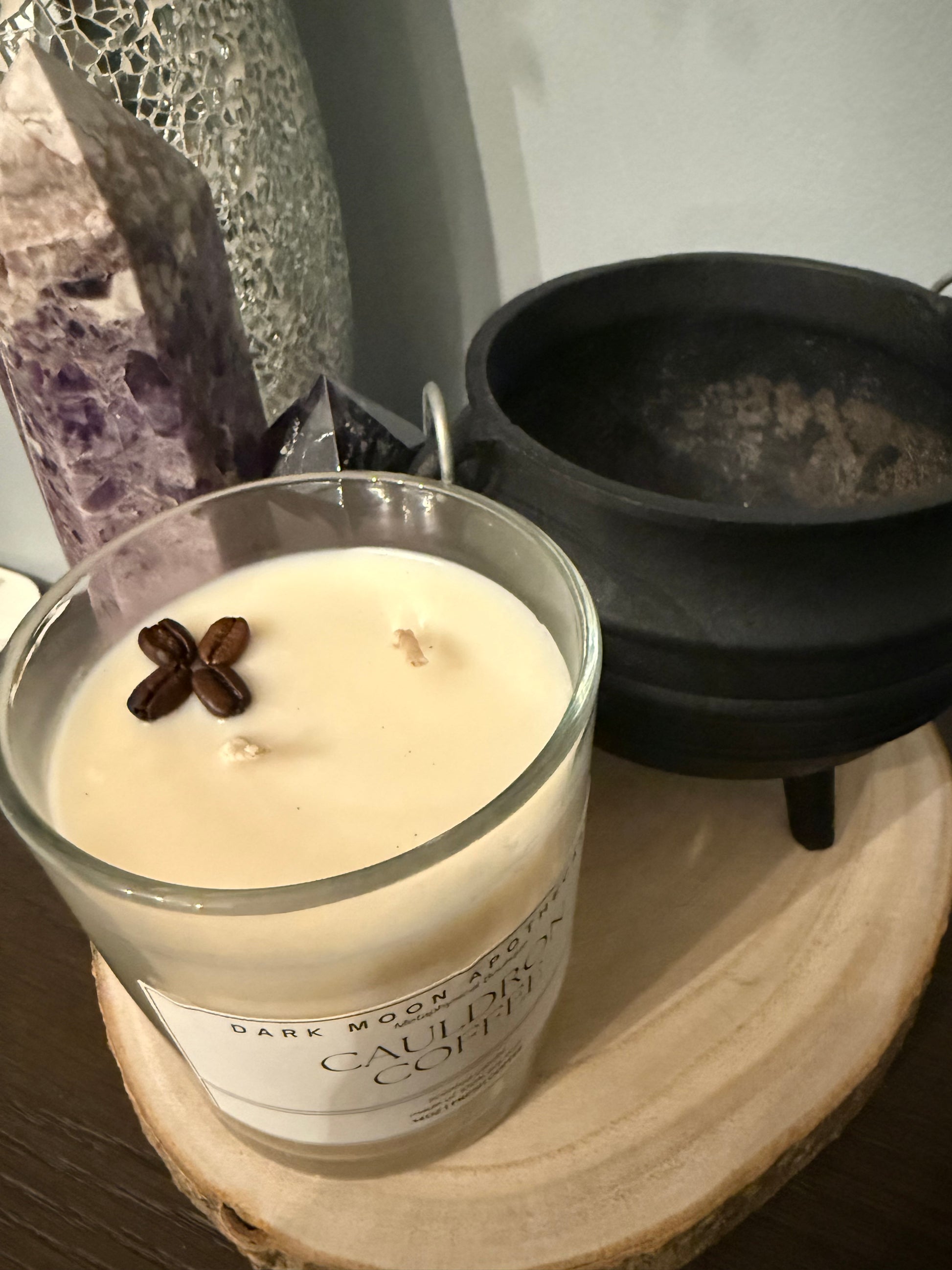 Awaken your senses with Cauldron Coffee, a candle brewed for comfort and energy. With real coffee bean accents atop creamy soy wax, this candle captures the irresistible aroma of a freshly poured cup, swirling with roasted richness and cozy warmth. Perfect for mornings that need a little magic or evenings spent in spellbound conversation.