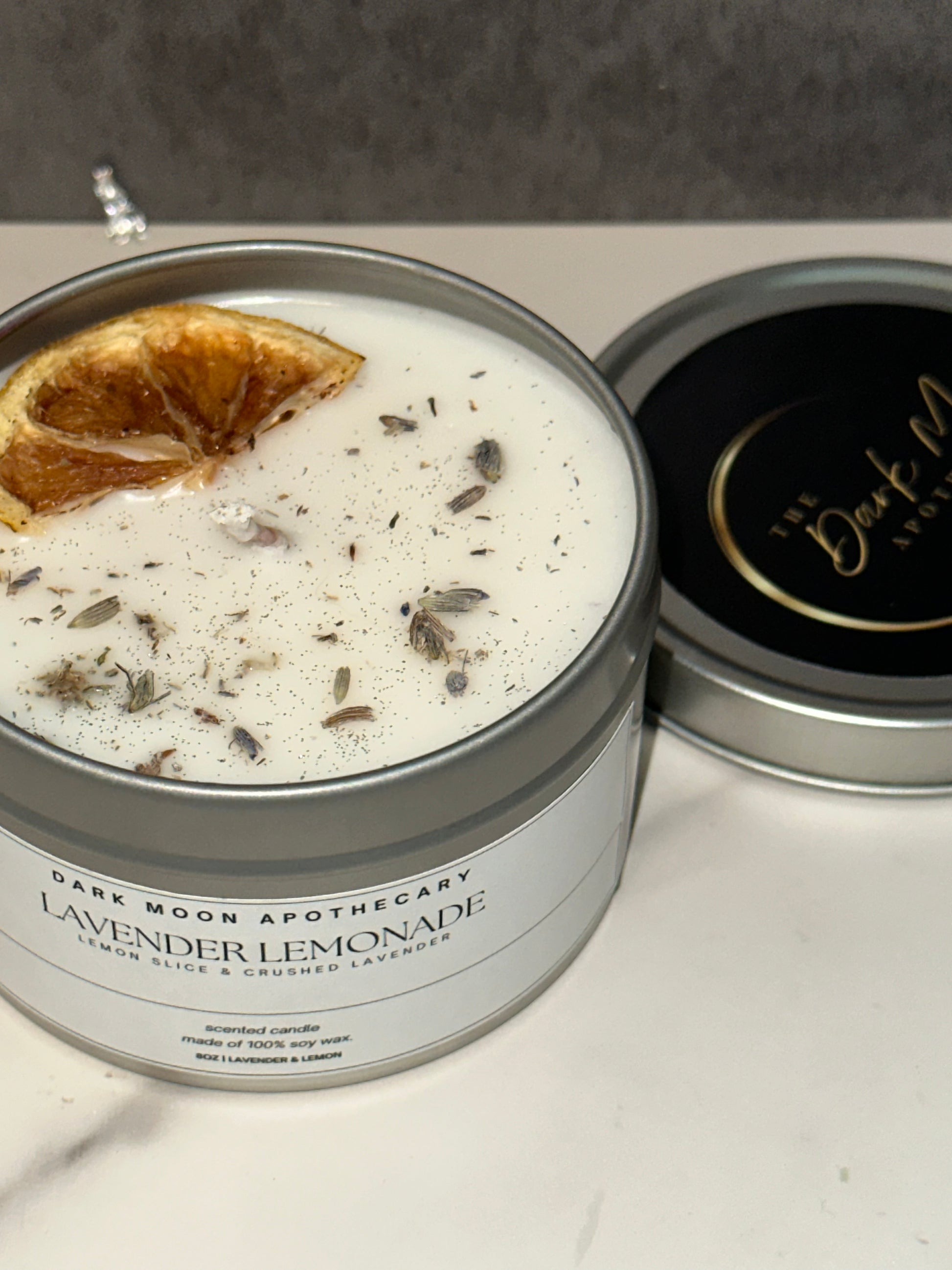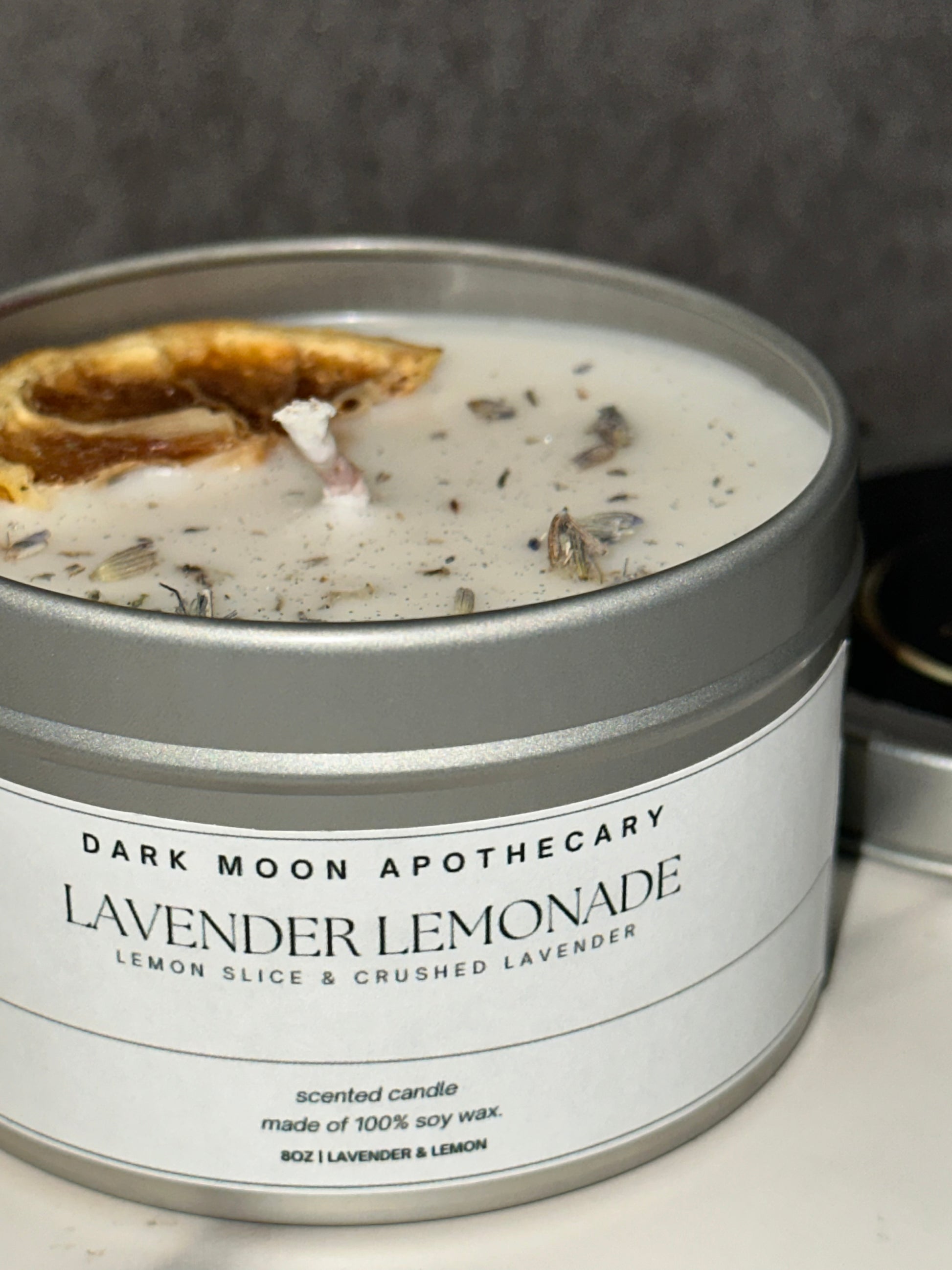 Bright, breezy, and effortlessly calming—Lavender Lemonade is your invitation to unwind with a twist of sunshine. Hand-poured with 100% soy wax, this 8oz candle features a dried lemon slice and scattered crushed lavender buds that capture the essence of a perfect summer day.